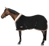 Luxe 400 grams fleece showdeken met teddy bont kraag en borstflap, kruissingels en2 koorden.Kleur koord wit met goud met zwarte biesrand bij zwarte deken