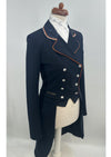 Deze donker blauwe frack is voorzien van een limited edition stof op de kraag,strik en tips en is afgezet met een oranje bies.