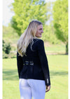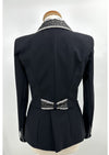 Deze jas is afgewerkt met Swarovski details. Bij deze jas is de Swarovski verwerkt langs de kraag en strik.