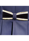 Deze jas is afgewerkt met Swarovski details. Bij deze jas is de Swarovski verwerkt langs de kraag en strik.
