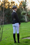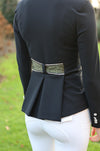 Deze zwarte jas is voorzien van een prachtige Limited Edition stof op de kraag en strik en is afgezet met een zwarte bies.