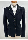 Dit sportieve model in zwart is voorzien van een limited edition stof op de kraag en strik en is afgezet met een shiny zwarte bies en Swarovski details op de kraag en strik.