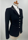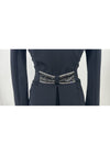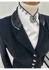 Dit sportieve model in zwart is voorzien van een limited edition stof op de kraag en strik en is afgezet met een shiny zwarte bies en Swarovski details op de kraag en strik.