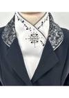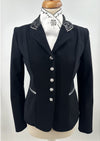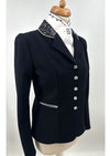 Deze zwarte jas is voorzien van een prachtige Limited Edition stof op de kraag en strik en is afgezet met een zilveren bies.