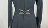 Bij deze jas is de Swarovski verwerkt langs de kraag en strik en twee keer Fake Pockets