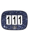Deze nummerhouder voegt een vleugje glitter toe aan je wedstrijdoutfit.