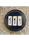 Wedstrijd nummer met Swarovski. Geschikt voor bevestiging aan het hoofdstel, halster en Sjabrak.