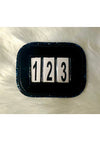 Nieuw in onze collectie deze zwarte lak wedstrijd nummers afgewerkt met Fabric. Verkrijgbaar in drie verschillend kleuren fabric. Zwart, blauw en Zilver.