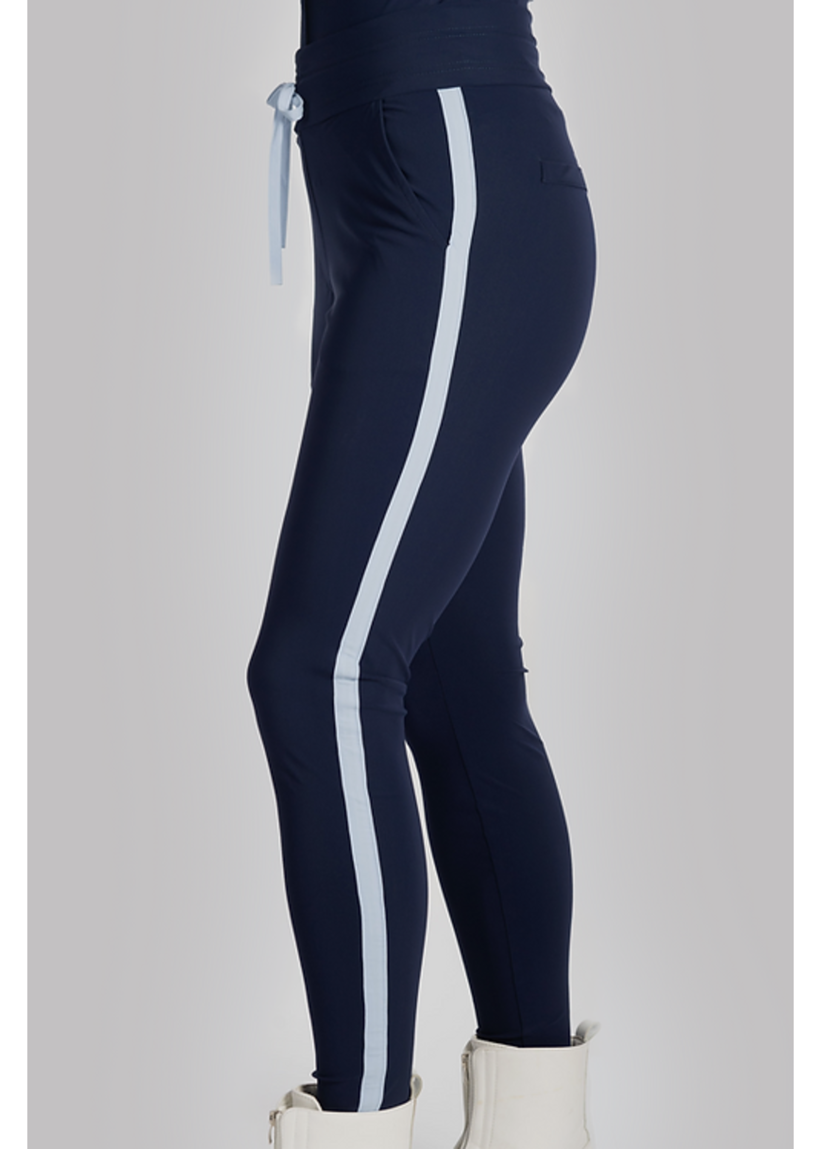 Sportieve trainingsbroek. Deze travel broek heeft een contrasterende streep langs de pijp en een bijpassende tailleband. Erg mooi te combineren met een bijpassend shirt!