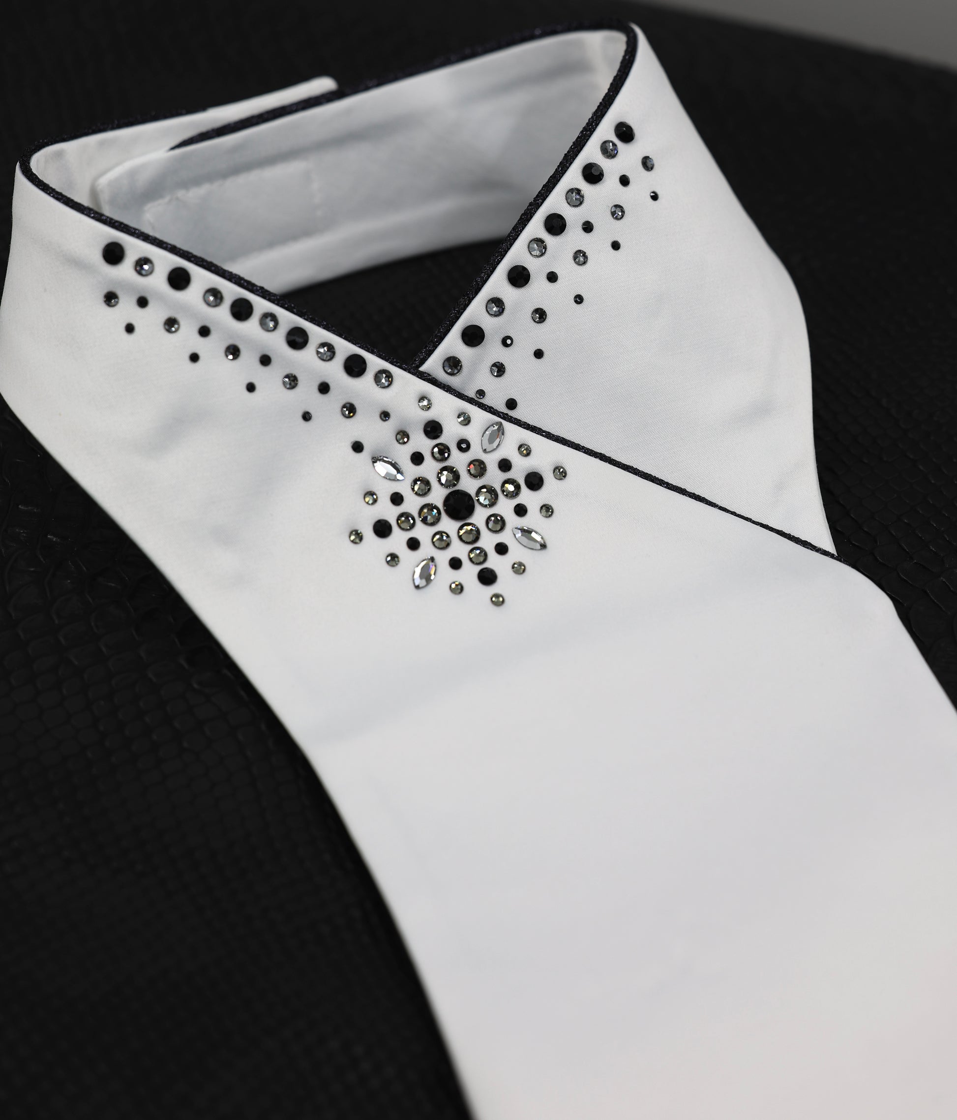 Deze plastron is afgewerkt met Swarovski Crystals en is wasmachine wasbaar.
