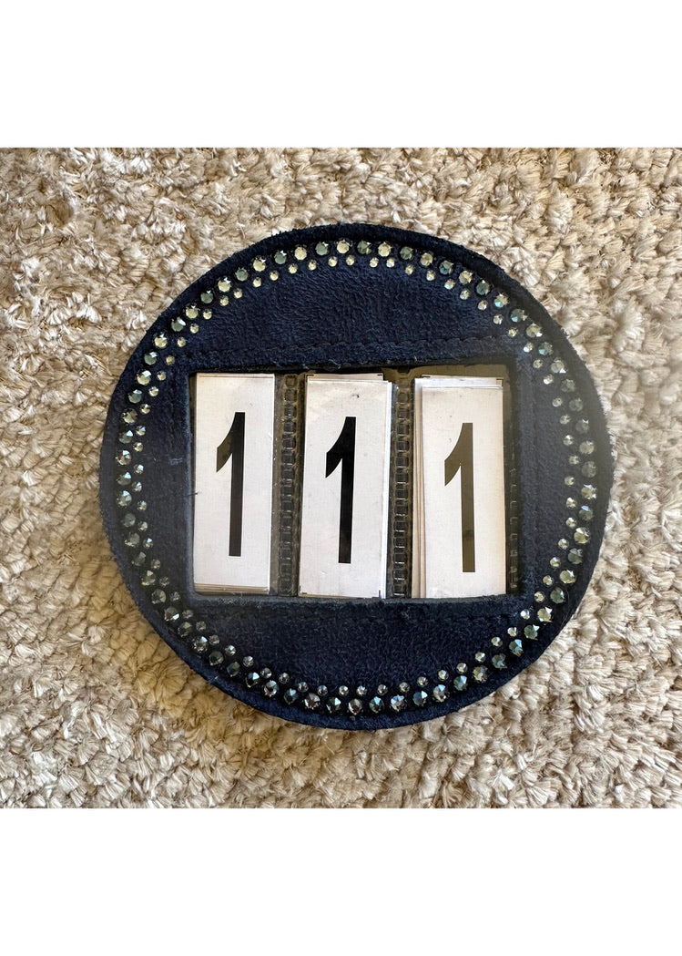 Wedstrijd nummer met Swarovski. Geschikt voor bevestiging aan het hoofdstel, halster en Sjabrak.
