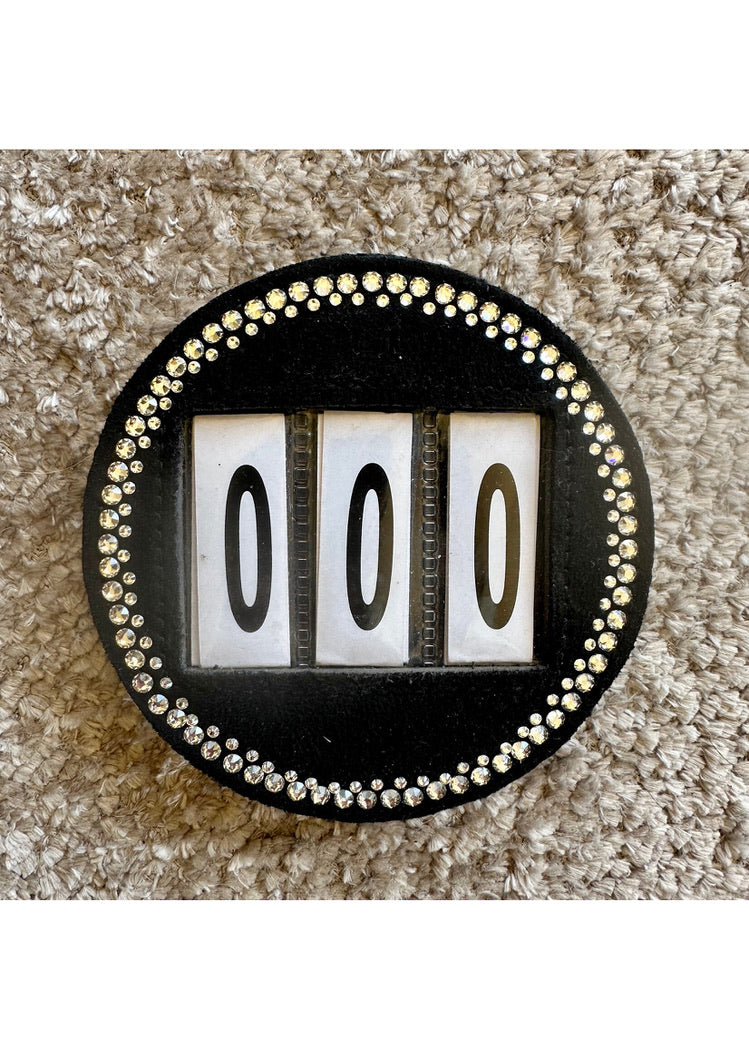 Wedstrijd nummer met Swarovski. Geschikt voor bevestiging aan het hoofdstel, halster en Sjabrak.