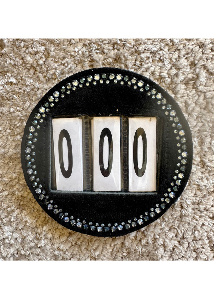 Wedstrijd nummer met Swarovski. Geschikt voor bevestiging aan het hoofdstel, halster en Sjabrak.